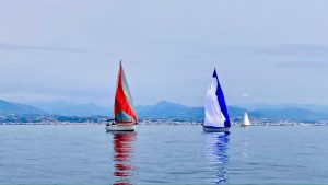 On prend les mêmes bouées que la dernière régate, mais on fait le parcours dans l’autre sens.